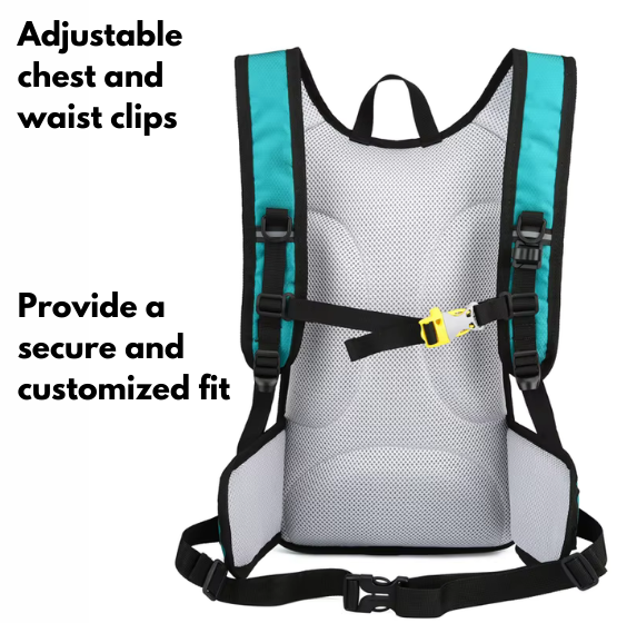 - Enhanced Fit & Comfort: Adjustable chest and waist clips provide a secure and customized fit, preventing the bag from shifting during intense movement.